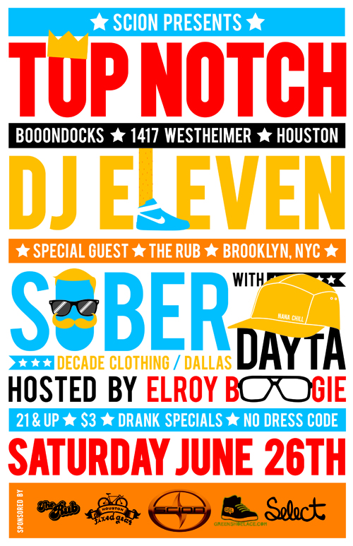 I am super excited to have The RUB’s DJ Eleven joining us for a big Top Notch weekend blowout. I have been trying to get this dude down here for some time now and the timing couldn’t have been better. Eleven has been hard at work releasing countless edits as well as a slamming new EP. If you are in Dallas or Houston this weekend, show face. These are going to be epic parties. If you are not familiar with Eleven and his crew, visit their site asap and get to downloading!