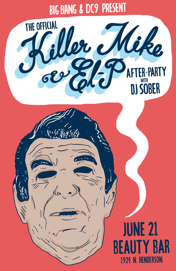 I’ve teamed up with the Granada Theatre and DC9 to bring y’all the official Killer Mike & El-P after party. After the show, they’ll be guiding the crowd to Beauty Bar, so it’s sure to be extra live. And who knows, maybe the men of the hour will show face. Let us know you’re coming. See y’all on Thursday!