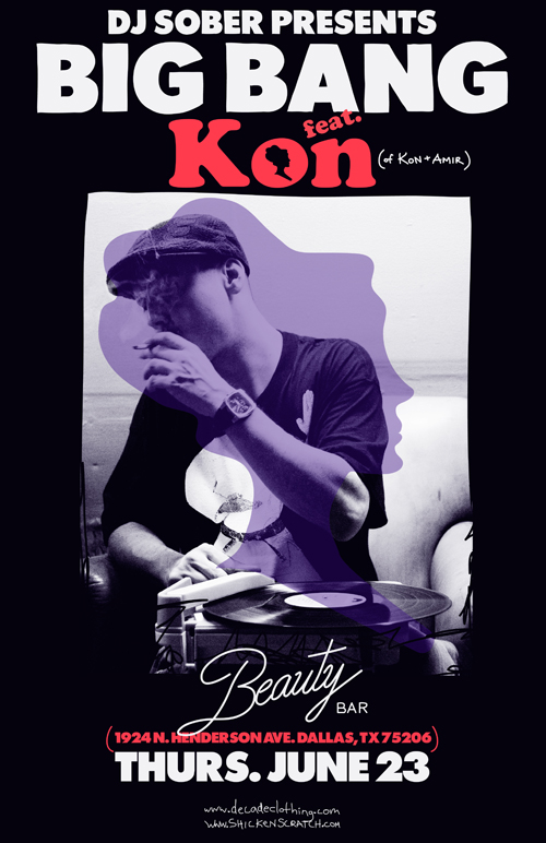 I am super excited to announce that Boston’s very own KON will be joining me on the 23rd for a VERY special edition of BIG BANG. I have been trying to coordinate this for a while and we finally made it happen. Dallas, I am going to need y’all to show out on this one. Break out those boogie shoes and join us. It’s going all the way down!