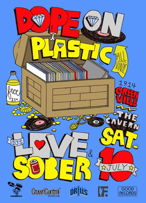 The first edition of Dope On Plastic was off the hook. The Cavern was packed, the crowd was live and the tunes were on point. Big shout out to Tony Schwa and Tyrone Smiley for rocking the spot with me. Both of these dudes came correct with their crates and went all across the board on the genre tip. Thanks to Observer for the write up, all of the sponsors for the giveaways and everyone that supported the night. Next month is shaping up nicely, I will have the Homie Dj Love joining me (dude has crates for days), as well as some new sponsors sending goodies. It all goes down on July 10th. See you there!