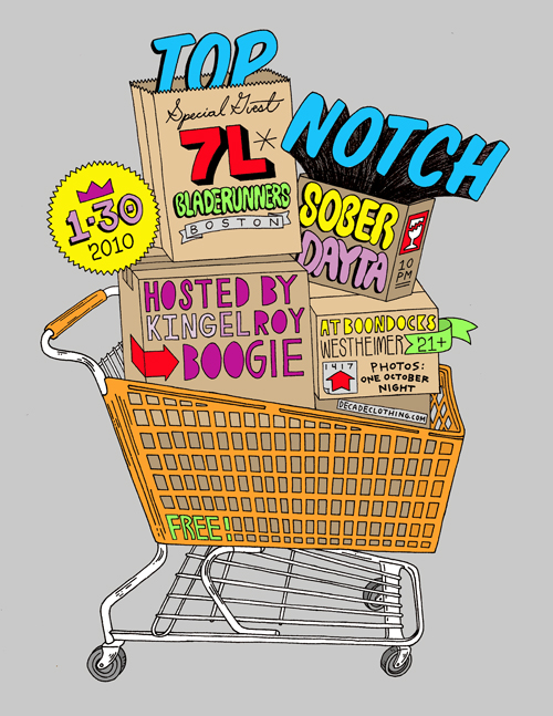 Friday night we will be in Houston at the the flat for Automatic with Cashless and Dayta. This will be on some 80’s R&B, Boogie Groove type vibe. Saturday is the big night, the Top Notch monthly at Boondocks. All out madness! Keep checking back. The other flyers will be posted soon as well as some mixes and a interview with 7L.